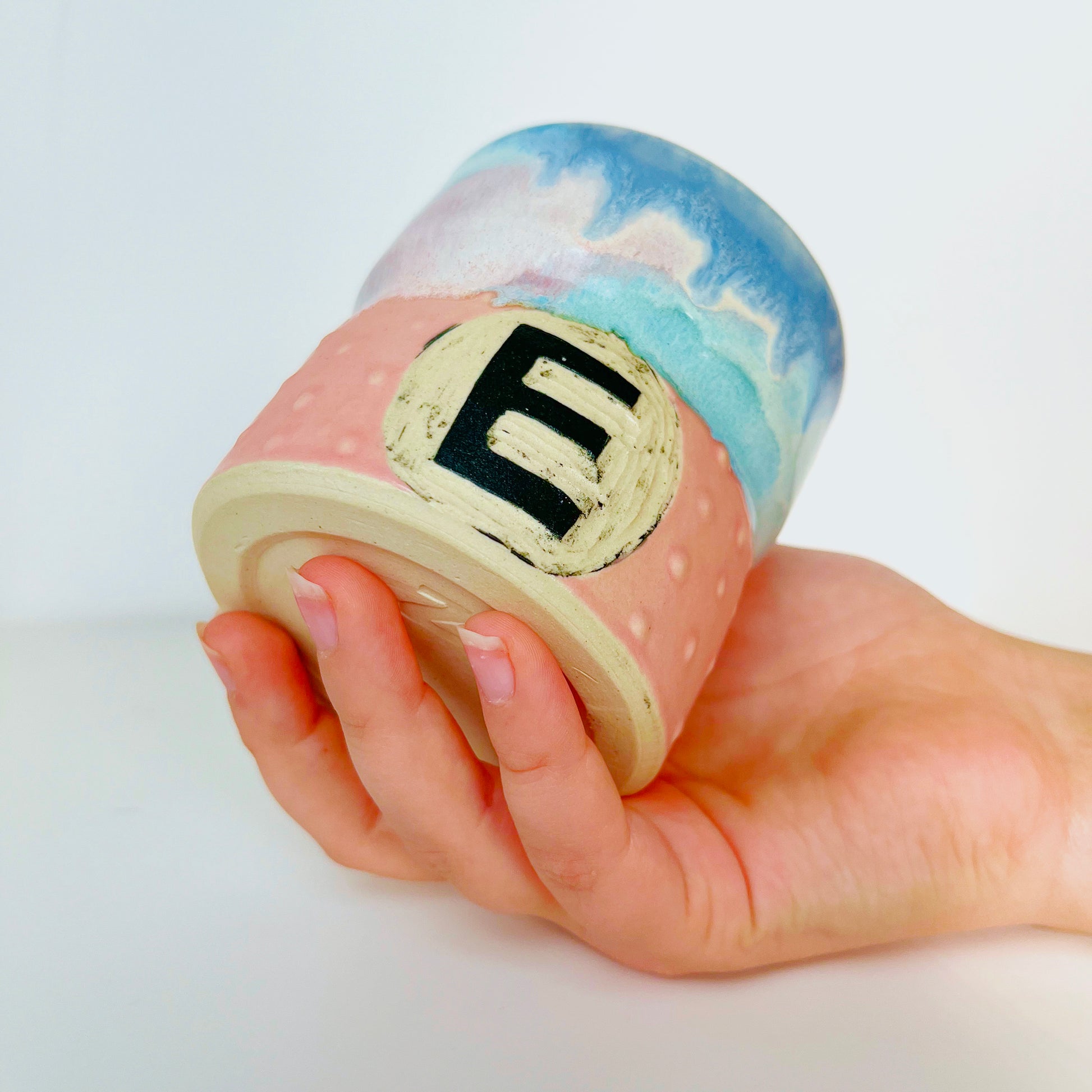 Don't know what to give that special kid for Christmas? What about a customized handmade pottery cup? These cups are designed especially for kids. They have an indent to make gripping easier, fun textured bumps on the bottom to create a sensory element, and of course my signature drippy colourful glazes. Each cup is engraved with the first initial of your child's name to make it extra special and just for them! Choose from three different colour options: